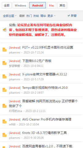 活跃的社区:论坛拥有庞大的用户群体,用户可以在这里交流经验、分享资源,获取到最新的软件破解信息。