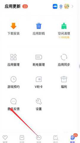 3、进入个人管理界面点击【意见反馈】选项按钮;