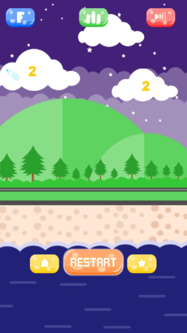 2、每扔进一个瓶子就能累积一个积分,当你没有将瓶子扔进垃圾箱的时候就失败了,游戏会自动保存你的成绩。