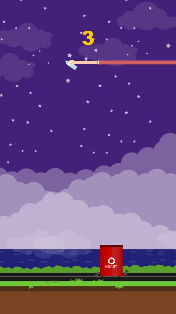 在游戏中你需要选择合适的时机点击屏幕,控制瓶子下降进入垃圾桶中,积累游戏的积分。