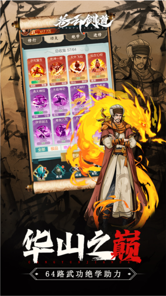 2、游戏提供了64种不同的武功秘籍,玩家可以自由组合,探索各种可能的武功搭配。