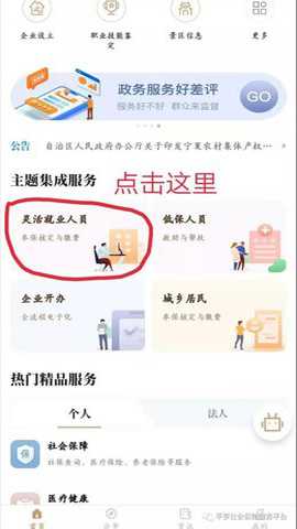 2.点击首页主题集成服务选择灵活就业人员