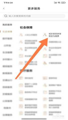 第一步:在手机上打开我的宁夏APP,然后在更多服务中点击打开城乡居然参保核定与缴费服务。