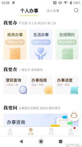 1、用户可以选择【查询】、【办事指南】、【办事进度】等功能,同时用户还可以在线咨询生活中不懂的事情。