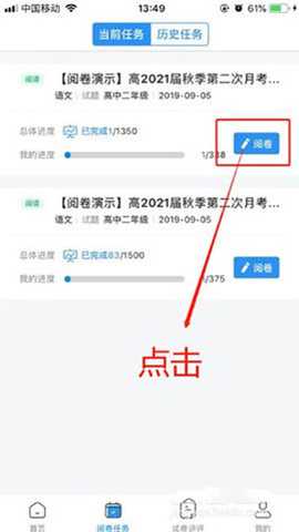 1、打开软件后,点击APP底部阅卷任务菜单栏,便可查看自己当前及历史的阅卷任务。