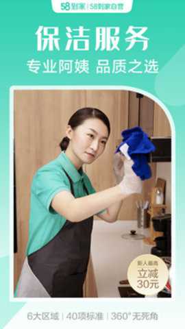 58到家是五八有限公司推出的专业生活服务平台,最优质的保洁服务,让你可以轻松从容的面对家中的所有卫生事务。精选的保姆,给用户最放心可靠的服务。还有搬家维修费服务,更加专业,高效率,让你的生活质量更高。