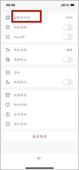3. 进入设置页面后,找到并点击“提醒写日记”选项。
