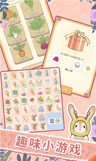 添加各类设施,种植花草树木,给你喜欢的兔子进行装扮和升级,在经营的途中开上一场音乐会。