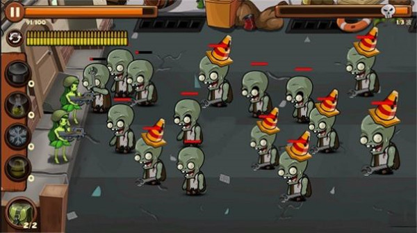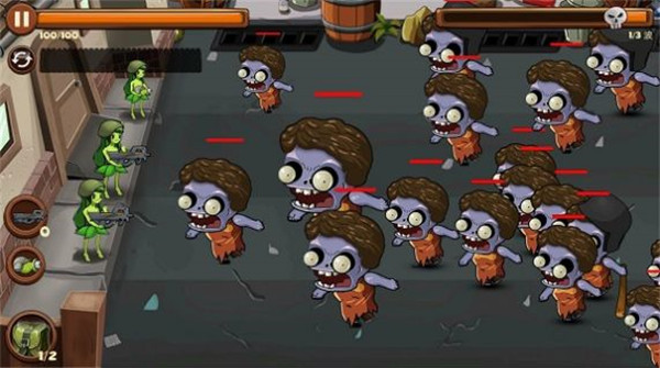 1、一起来强化不同的防御作战,来完成阻击僵尸攻击的任务。