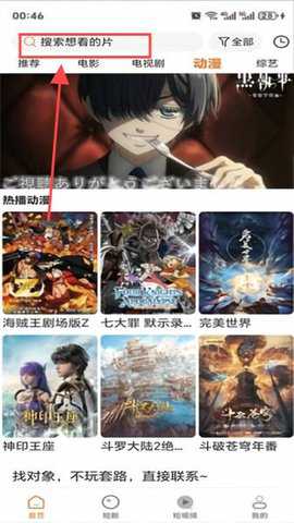 1、打开香葱追剧app,进入主页,在搜索框输入想要下载的影视名称;