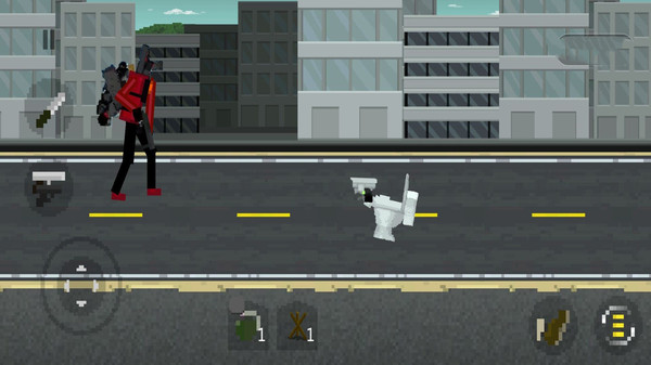 荒诞的剧情加上奇葩的角色形象,让战斗的场面也看起来非常滑稽,头上戴着监视器的人拿着武器,将拥有马桶身子的敌人击败,敌人流出的血竟然是绿色的,这种关卡在马桶人营救计划游戏里面是非常多的。每个关卡里面还会散落各种不同的武器,玩家在闯关的时候可以操作角色去拾取使用。