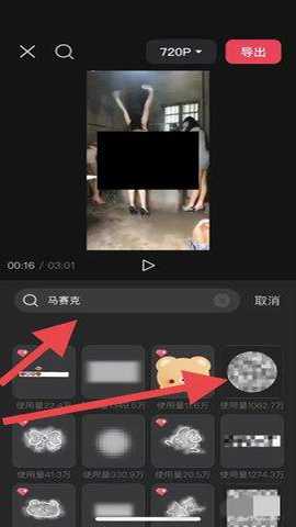 在搜索框输入马赛克,选择马赛克贴纸