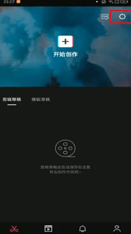 1、首先打开剪映软件,进入到剪映首页之后我们需要点击右上角的【设置图标】,同时在该页面中想要编辑视频的话直接点击开始创作即可;