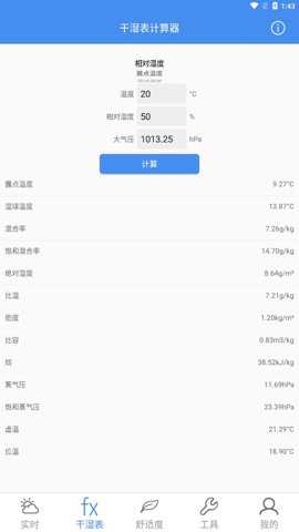 气象计算是一款专业的手机天气软件是一款应用和计算app能够根据数据智能分析天气情况,支持舒适度计算、干湿表计算等多种功能,让天气计算分析更加轻松。