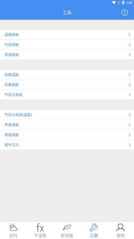 2、气象计算还提供多种实用的工具,包括单位转换、体感温度、风寒、气压与海拔、声音速度、密度高度和马力等。
