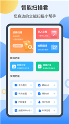 智能扫描君是一款非常实用的手机文档扫描软件具有界面简洁直观、操作简单易懂等特点。同时还拥有多种导出格式选择和OCR文字识别精准度高等优点。可以将手机拍摄的纸质文档转换成电子版,方便用户进行存储、管理和分享。