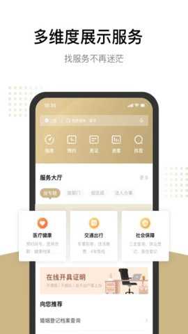 2、这款应用包括政府办事、电子证照“亮证扫码”、个人信息查询、到站等便民服务以及特色应用。
