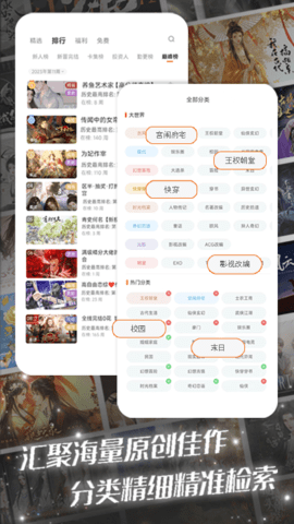 3. 提供个性化推荐功能,根据用户喜好推荐相似题材或作者作品。