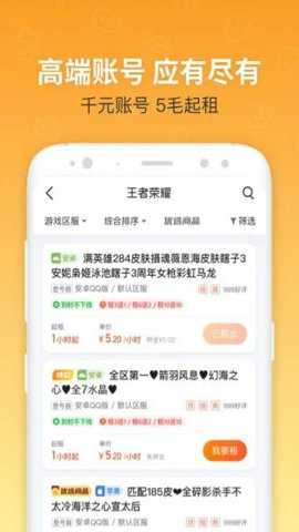u号租app是由南京势胜网络科技有限公司打造的游戏账号出租软件,用户通过软件可以租借各种游戏账号,享受不同游戏的乐趣,通过u号租平台,轻松找到自己喜欢的游戏账号,可以根据自己需求选择不同的租借时长和价格,同时平台也会提供账号安全保障和客服支持,给你带来全新租号体验。