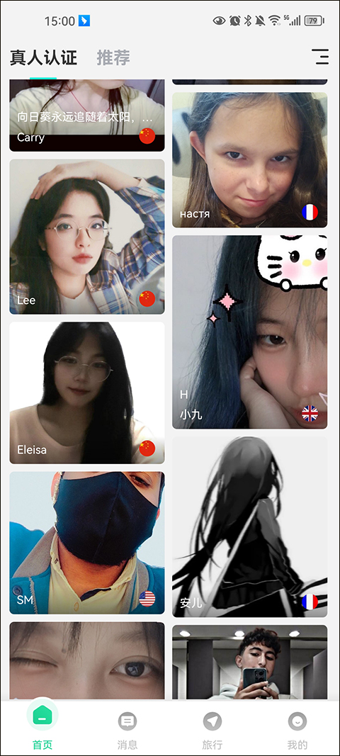 4、 模拟旅行:双击屏幕即可切换至韩国、美国等国家,随机匹配当地用户,体验虚拟环游世界的乐趣。