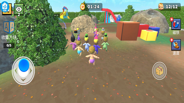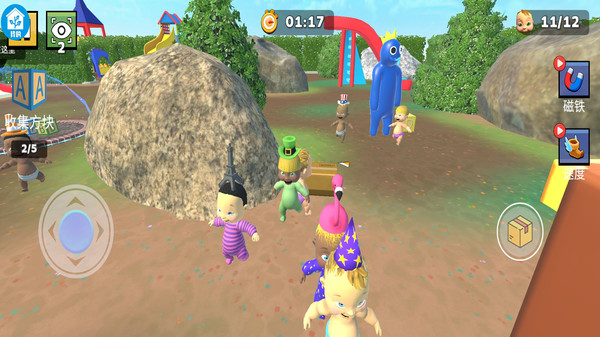 2、扮演小朋友角色,和队友合作玩耍,重温童年纯真乐趣,操作简单一学就会。