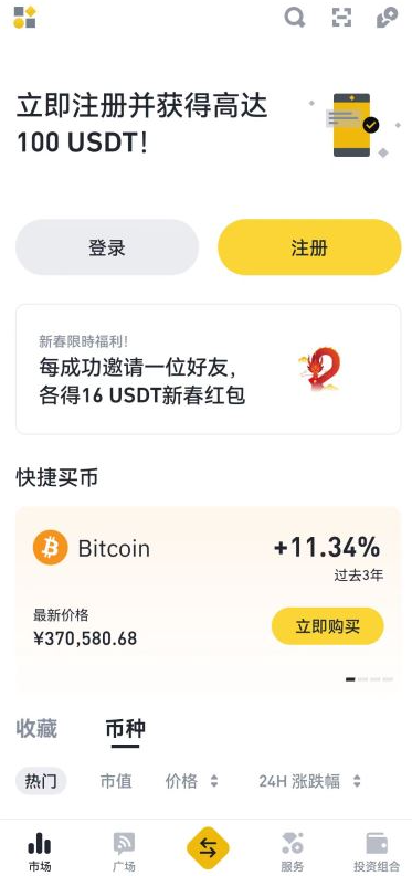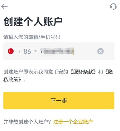 1、打开BinanceApp,点击【注册】按钮进行个人账号注册。