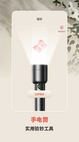 1、手电筒验钞的验钞功能非常实用利用手机摄像头对纸币进行图像分析,可以帮助您轻松辨别纸币的真伪。
