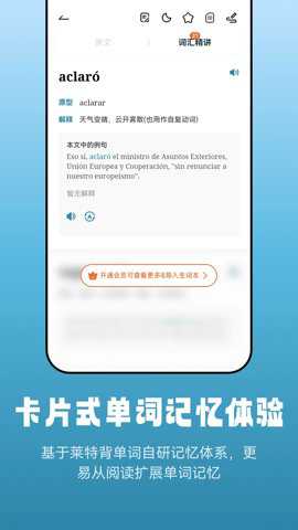 2、莱特西班牙语阅读听力app还采用了全新的艾宾浩斯和人工智能练习模式,这样你在训练阅读和听力的同时不知不觉地增加了西班牙语词汇量。