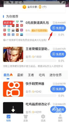 1.打开助手观看视频获取金币。