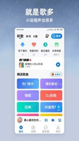 1.【海量歌曲随心听】经典老歌、广场舞、红歌、民乐、戏曲、应有尽有,不仅为你定制,还能听歌识曲。