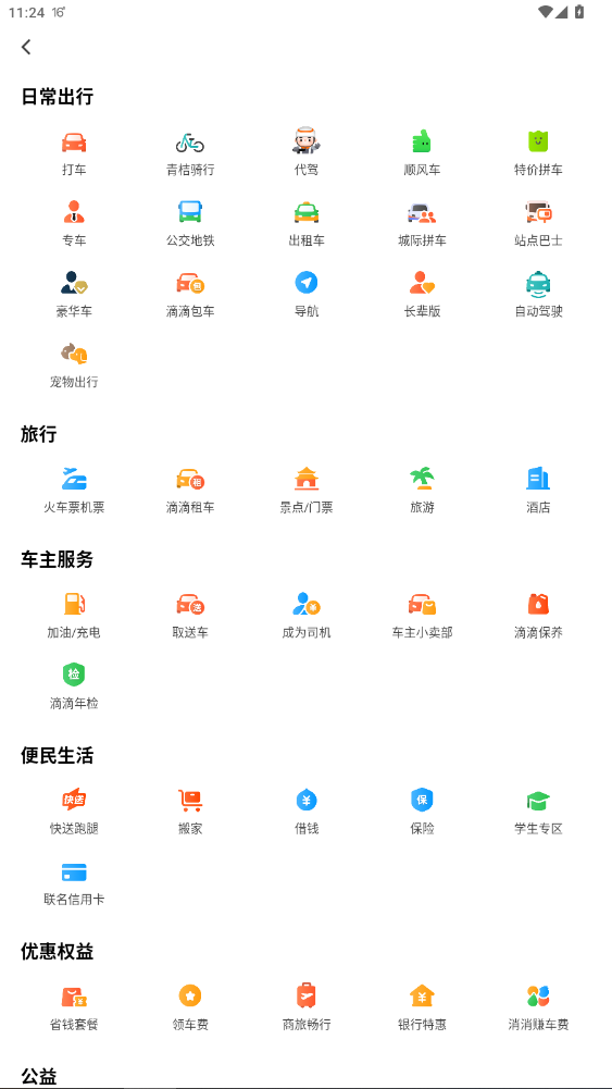从基础的网约车、出租车,到特色的宠物出行、包车,再到订火车票、代驾、送货、搬家、充电加油等生活服务,用户无需切换多平台,在滴滴即可满足多元需求,简化操作流程。