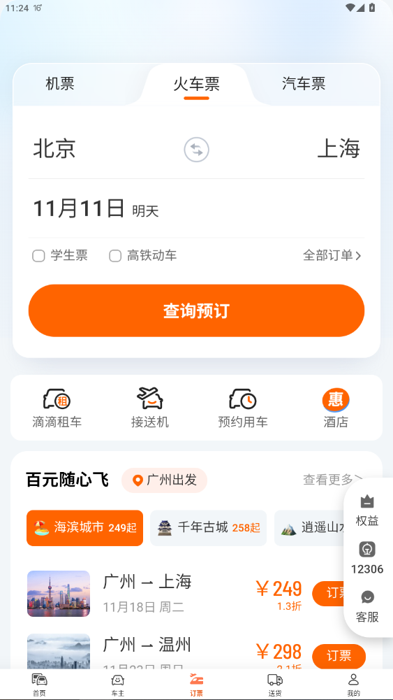 滴滴出行(又称滴滴打车)是一款覆盖多元出行与生活服务的一站式平台,不仅延续网约车、出租车、顺风车等经典服务,更新增 “出国打车” 核心功能,同时拓展宠物出行、包车服务及订火车票、代驾、送货等生活服务。