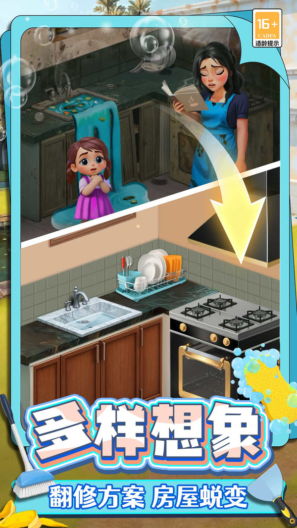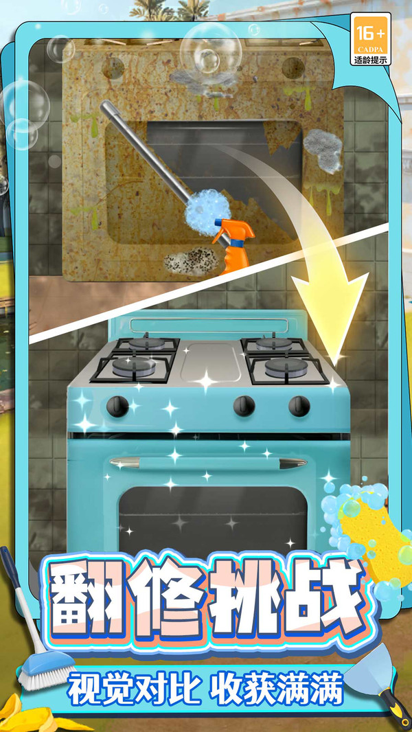 用手中的工具将脏兮兮的车子、家具还有电器都洗干净,听起来是一个很复杂的过程,但是体验之后才知道非常的解压!看着一个很脏的东西通过自己的劳动变得干净,感觉整个人的身心都舒畅了!我清洗贼6游戏里面的物品在被清洗干净之后,还可以使用工具对它进行修复,将破损的地方补好,让它看起来像个新的一样!