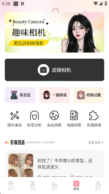 4、找到“趣味相机”板块,进入后可尝试换发型、一键换装功能,探索多样造型。