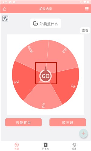 5、新轮盘添加完成后,用户可直接使用,点击轮盘中间的按键,即可转动轮盘完成选择。