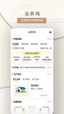记录养鸡信息:在app中记录养鸡过程中的各种信息,如喂食情况、产蛋情况、健康状况等。