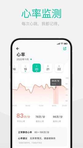 1、心率监测功能能够记录每次心跳,让您更加了解自己的心脏状况,让您随时了解自身健康变化情况,调整生活作息,养成良好的习惯。