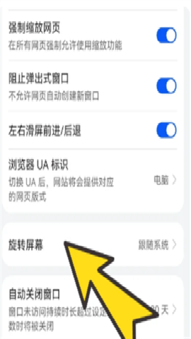 2、进入浏览设置界面后,找到并点击旋转屏幕。