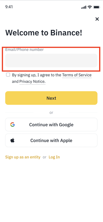 4.输入邮箱地址或手机号码。阅读并同意服务条款和隐私政策。勾选复选框进行确认,然后点击【下一步】。