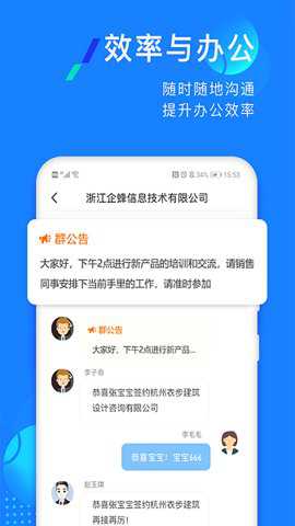 企蜂云是一款功能强大的企蜂云客户管理和办公应用提供了协同办公的功能,包括即时IM通讯和OA协同。企蜂云还提供了日志、日程、公告、工资条、智能等办公应用,使员工能够高效协同工作,相互推动业务发展,并且它操作简单易上手,员工可以随时随地使用、钉钉等工具进行沟通交流,确保客户的安全和沟通的便捷性。