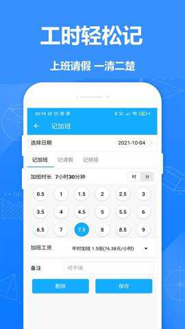 2、可以帮助用户统计加班时长和工资,记录每天的上班工时,并提供详细的考勤记录和加班日历。