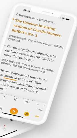 1、是一个双语阅读软件,为用户提供了丰富的外刊杂志和报纸,可以帮助用户提升英语阅读水平,记忆词汇和分析短语的使用,让学习外语变得更轻松。