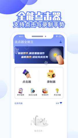 连点器全能王安卓最新版是一款免费好用的连点神器,用户们可以在连点器全能王安卓最新版轻松的进行日常重复操作的视线,帮助用户们彻底的解放你的双手,能够帮助用户们快速的进行重复的点击,支持用户们进行点击与录制手势,满足用户们的不同使用需求。