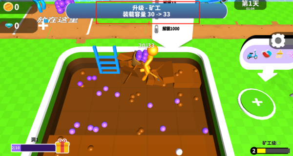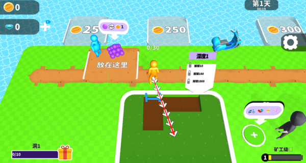 玩家将从一名普通矿工起步,通过不断挖掘地底宝藏来积累财富。游戏采用简单直观的操作方式,点击屏幕即可进行挖掘。随着游戏进展,可以雇佣更多工人协助开采。