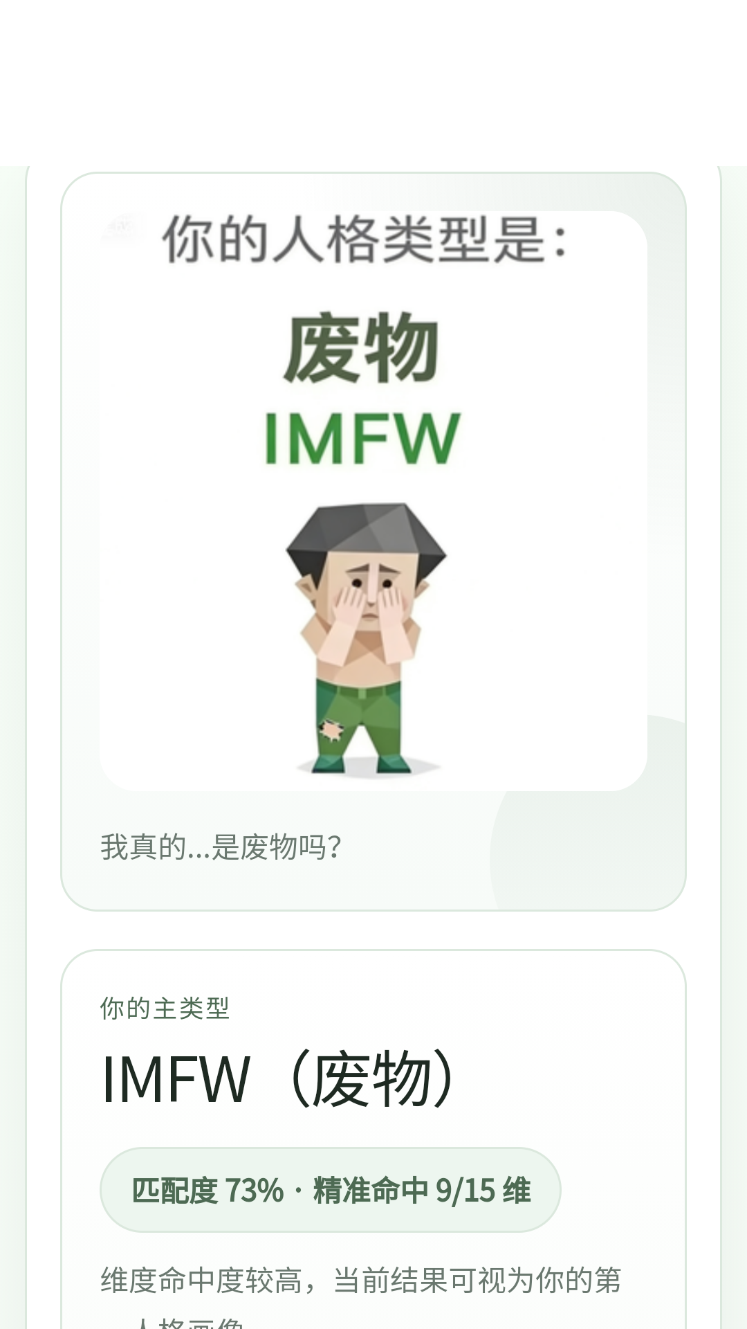 魔性结果标签(全网刷屏梗)结果完全随机,多次测试结果不同。常见人格: