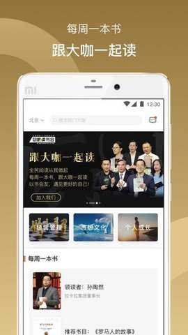 1、跟大咖一起读每周一本书,由大咖为你读。跟随大咖的经验去学习,去成长,站在巨人的肩膀上去看更远的世界。