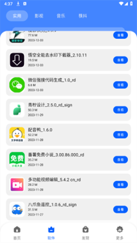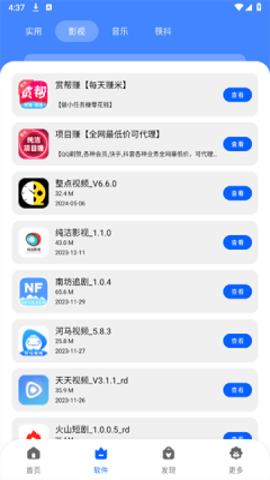 1、发现软件界面清晰明了,资源分类详细,包括影视、音乐、工具等多个板块,方便用户进行浏览。