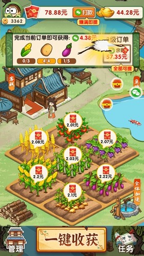 种田经营获取最多的红包,需要每天都来完成经营任务,还可以连续签到获取奖励哦。种植田地作物升级小院客栈解锁红包,直接体验古代田园生活。