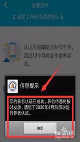 提示“养老认证成功”,点击“确定”即可。
