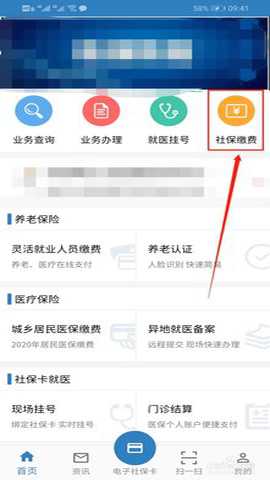 登陆后点击【首页】中的【社保缴费】。